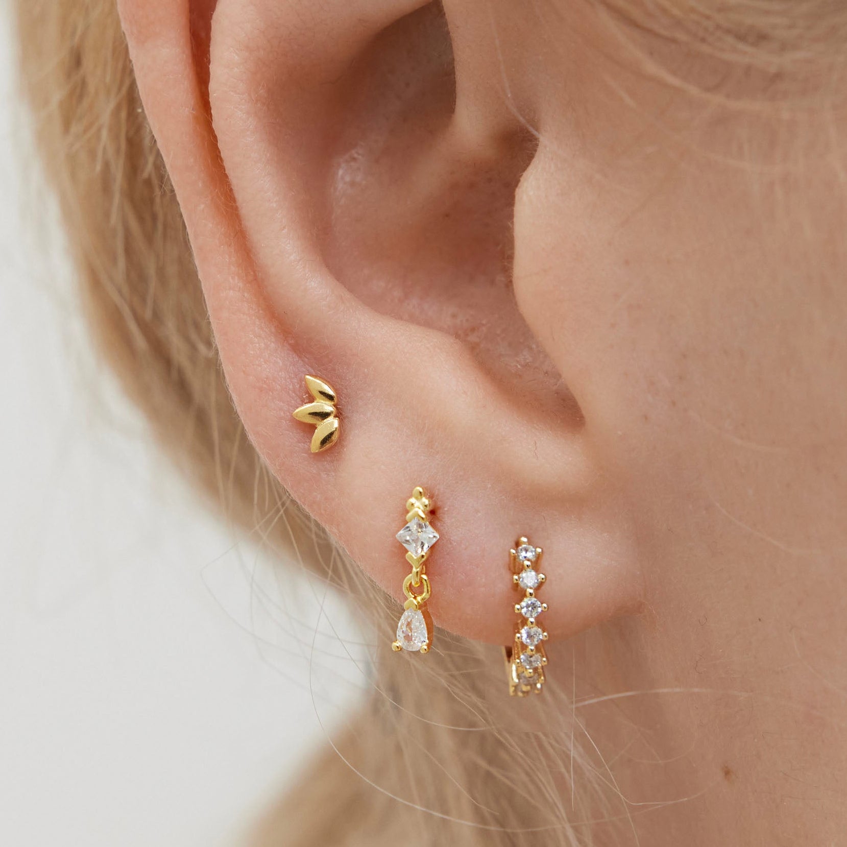 ✨Add a touch of understated sparkle to your style with the CZ Huggie Hoop Set. Featuring cubic zirconia accents, these dainty earrings are perfect for adding a refined, minimalist charm to any outfit. Whether for everyday wear or special occasions, this set is a versatile and timeless addition to your jewelry collection.
