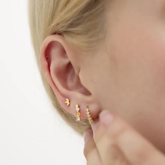 Design: Sleek huggie hoops embellished with shimmering cubic zirconia stones for a classic yet modern look.